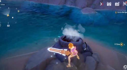 Доберитесь до указанного места. Там на скале вы увидите лавовую яму, которую необходимо потушить с помощью любой ледяной атаки. Если она неактивна, то вам нужно либо подождать следующего дня, либо повысить свой уровень.