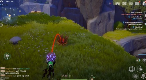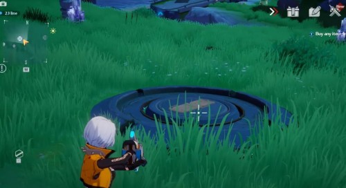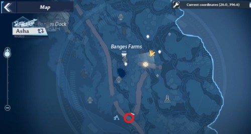 Переместитесь к телепорту, показанному на скриншоте ниже, а затем двигайтесь на юго-восток к границе с областью Бангис. Там на лугу вы обнаружите нажимную пластину. Ударьте по ней (возможно, требуется ледяная атака), чтобы появилась золотая крутка.
