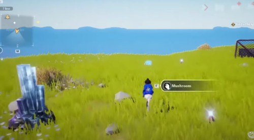 От телепорта на ферме спланируйте на север. Там вы обнаружите три гриба. Вам нужно будет попрыгать по их шапкам в последовательности, показанной на втором скриншоте ниже. После этого появится золотая крутка.