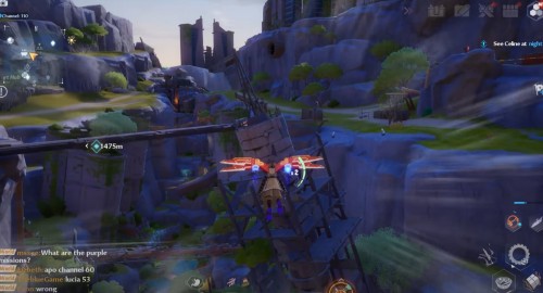 Возвратитесь к предыдущему телепорту и теперь двигайтесь на юго-запад. Дойдите до обрыва и спрыгните с него. Летите к трубе, показанной на втором скриншоте ниже (над ней парит ядро). Если вы не достаете, то создайте сначала конструкцию с помощью оружия героя и только потом планируйте вниз.
