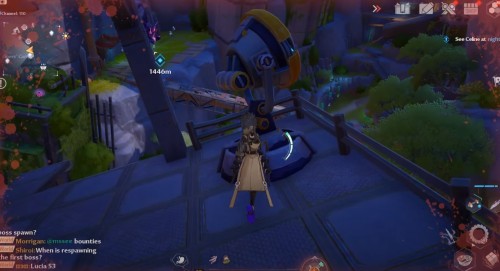 Возвратитесь к предыдущему телепорту и бегите на юго-запад. Поднимитесь на металлическую платформу и разберитесь с противником, чтобы разблокировать необходимый предмет.