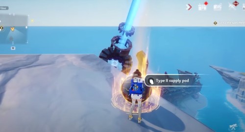 Все на том же парящем острове Cetus бегите к его северному краю, и возле трех деревцев вы найдете капсулу снабжения II, в которой может оказаться золотая крутка.