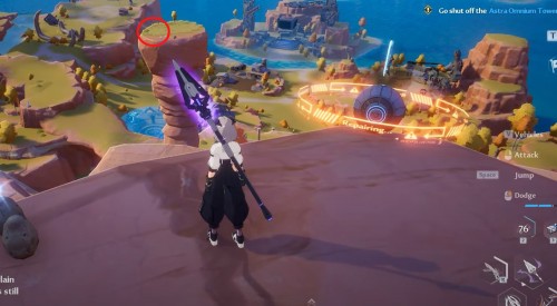 Переместитесь к телепортационным вратам указанного района, а потом направляйтесь на восток к Кладбищу Астры (Astra Cemetry). Вам нужно будет взобраться на огромный одинокий утес. Для этого сначала поднимитесь на гору напротив, а потом спрыгните с нее и спланируйте к утесу впереди.