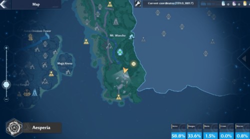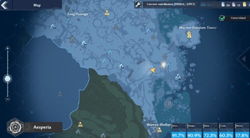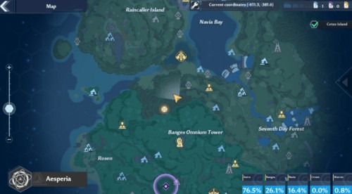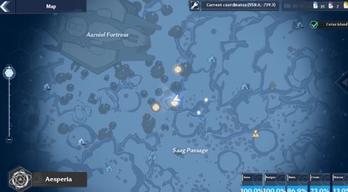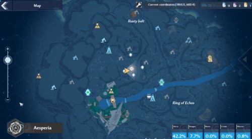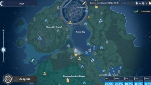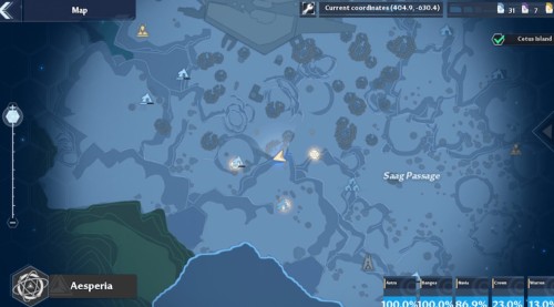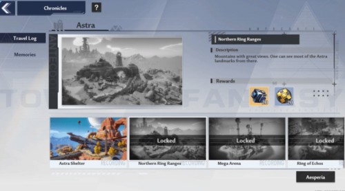 Вы сразу же попадете в журнал путешествий (Travel Log). Здесь перечислены все живописные места для каждого региона и указаны награды, которые вы можете получить. Нажмите на кнопку «Aesperia», чтобы открыть карту области и увидеть имеющиеся здесь достопримечательности.