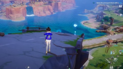 От телепорта на острове, окруженного со всех сторон водой, двигайтесь на запад. Перелетите через пропасть с помощью реактивного ранца, а затем заберитесь на скалу. Нужная точка находится на краю утеса.