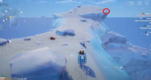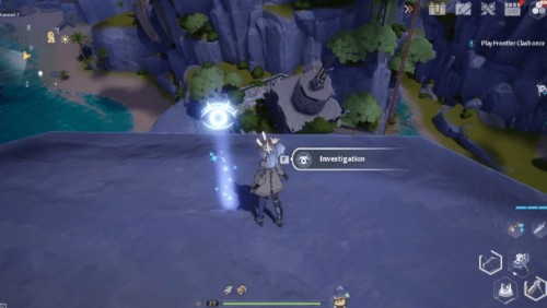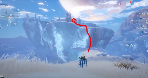Переместитесь к телепорту в указанной области, а затем бегите на запад и взберитесь на скалу. На обрыве вы найдете нужную точку интереса.
