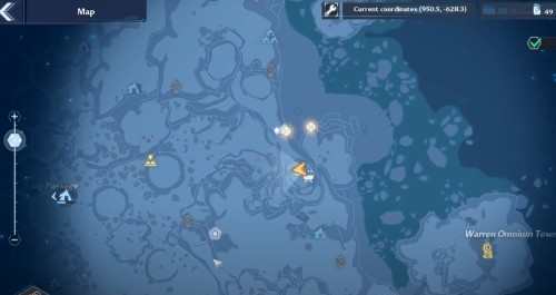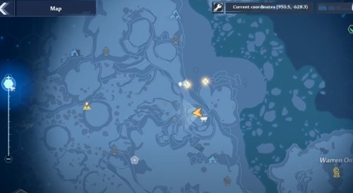 Возвратитесь к предыдущему телепорту и теперь отправляйтесь на юго-запад. Заберитесь на расположенные здесь скалы. Дойдя до указанных координат, вы обнаружите точку интереса.