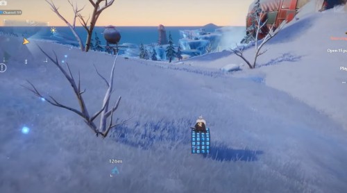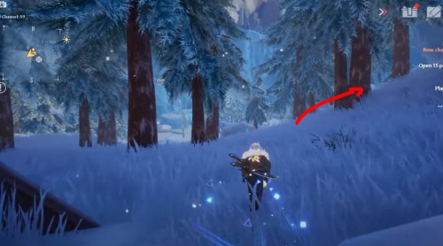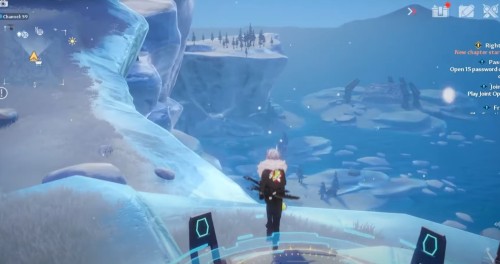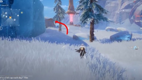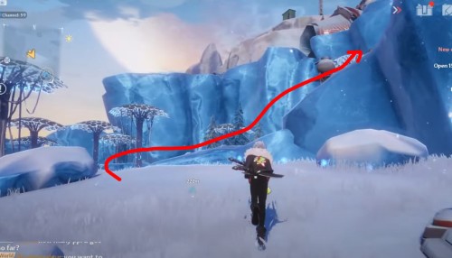 Переместитесь к телепорту, показанному на скриншоте ниже, а затем отправляйтесь на юг. Старайтесь не спускаться слишком сильно вниз, чтобы вы смогли быстро взобраться на утес, на краю которого находится обзорная точка.
