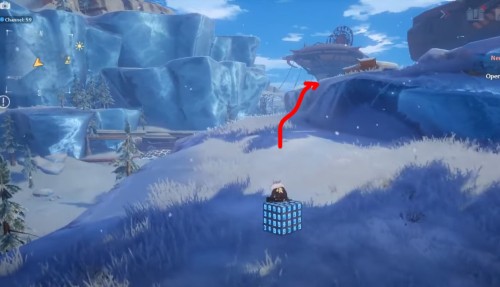 Переместитесь к телепортационным вратам Spacerift: Warren Snow Peak, показанным на скриншотах ниже. Затем начните двигаться на юг в сторону огромного ледяного утеса впереди. Заберитесь на него с помощью реактивного ранца, а потом бегите налево и поднимитесь еще выше.