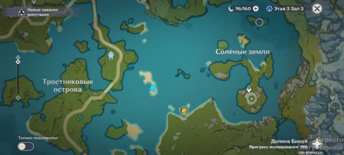 В западной части долины Бишуй есть несколько небольших островов с одним телепортом. Переместитесь туда и немного пройдите на восток, чтобы увидеть первые артерии.