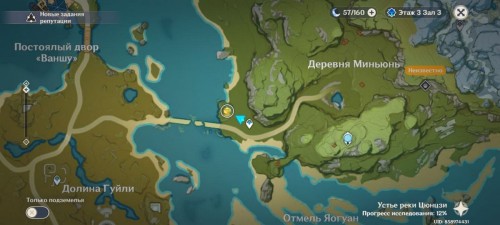 К юго-западу от деревни Миньюнь есть мост и телепорт. Одно из испытаний появится чуть севернее телепорта.