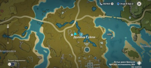 В долине Гуйли через водоем от точки телепортации расположены следующие артерии.