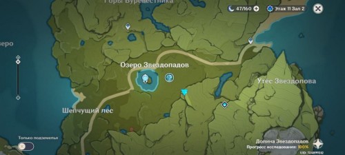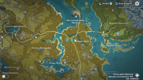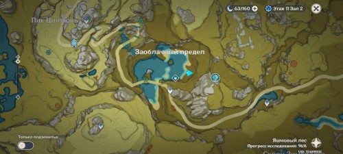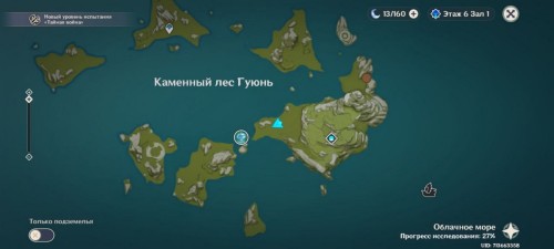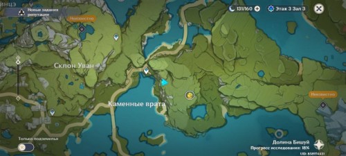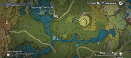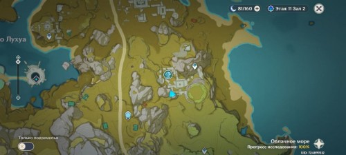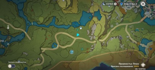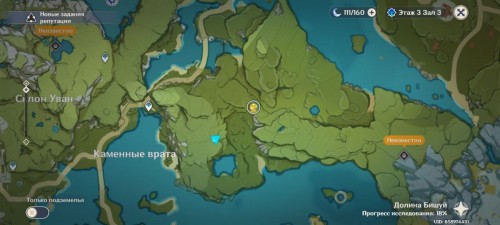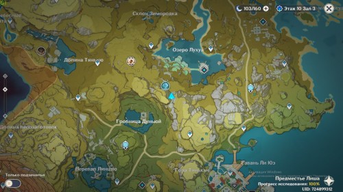 В Ли Юэ артерий земли больше всего – 53. Их общую карту вы можете увидеть ниже. Если же говорить о врагах, то снова придется драться с хиличурлами, митачурлами, похитителями сокровищ, руинными охотниками, магами бездны и стражами руин. К ним теперь присоединятся различные лавачурлы, агенты и маги цицинов Фатуи. Опять же не рекомендуем собирать команды, базирующиеся на одной стихии. Лучше взять универсальный отряд с упором на реакцию Пар или Таяние.