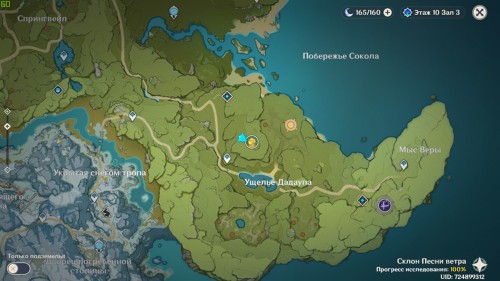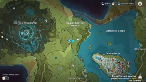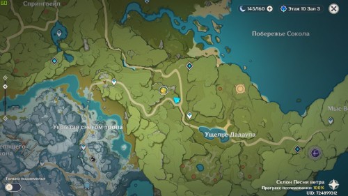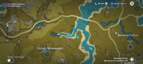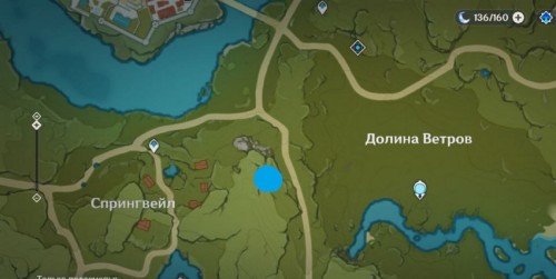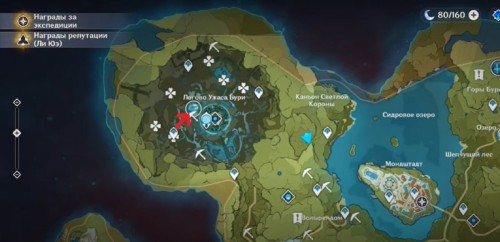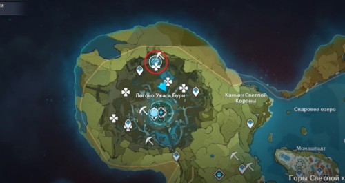 Первая локация с артериями находится в западной части логова Ужаса Бури, к северо-востоку от телепорта. Вам придется взобраться на возвышенность и, скорее всего, пройти через лагерь хиличурлов, поэтому будьте готовы к нескольким сражениям.