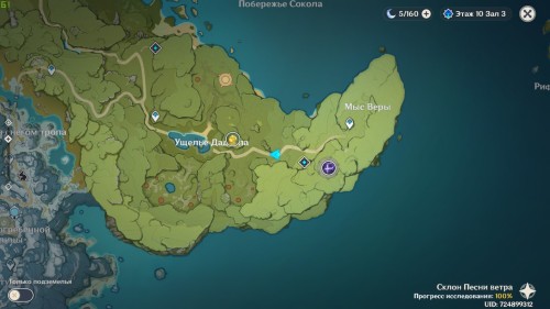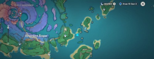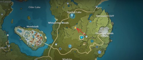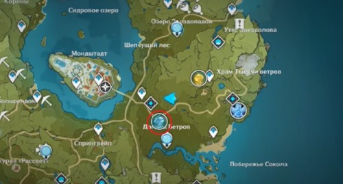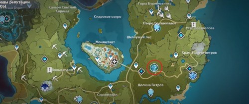 До следующего цветка можно добраться двумя путями: либо от телепорта из предыдущего пункта, двигаясь на юго-запад, либо от Статуи Архонтов на Тростниковых островах, двигаясь на юго-восток.