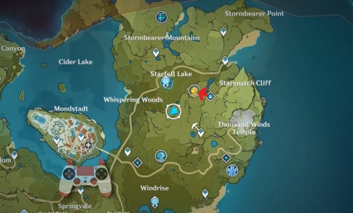 До этого цветка можно добраться от той же Статуи Архонтов, что и до предыдущего, но уже двигаясь на северо-запад.
