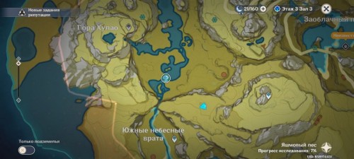 Еще одно испытание находится у реки, протекающей от горы Хулао к Южным небесным вратам. Если вы прошли задания легенд Чжун Ли, то вам проще будет добраться до этих артерий от подземелья «Под древом подавления».
