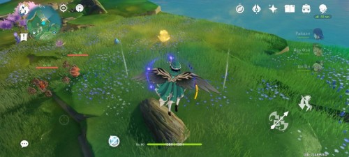 От предыдущего цветка вы можете сразу идти к следующему: он расположен северо-западнее. Будьте осторожны: совсем рядом с цветком находится Анемо слайм.