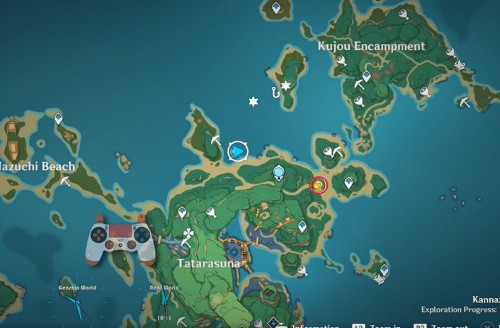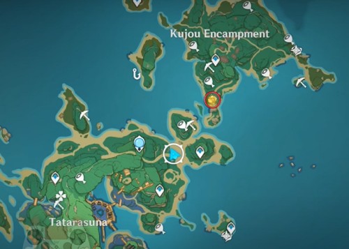 Следующая локация – остров Каннадзука. Артерии, окруженные бочками с Пиро слаймами, находятся к северу от Татарасуны и телепорта.