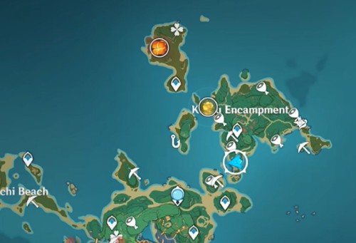 К югу от якорной стоянки расположен очередной цветок, а также маг Крио цицинов Фатуи.