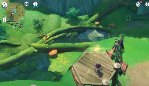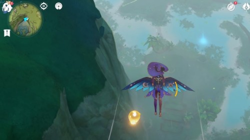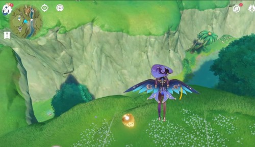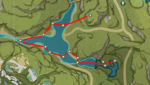 Переместитесь к телепорту на возвышенности, а затем спланируйте вниз к речке на западе. Начните собирать лотосы в указанных на карте местах. В конце маршрута пройдите на восток и спрыгните с водопада, чтобы найти внизу дополнительные цветки. Вам удастся отыскать тут 13 нужных растений.