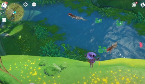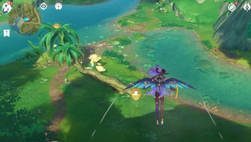 Телепортируйтесь к статуе Дендро Архонта, а потом летите на юго-восток к небольшому водоему. Здесь можно найти еще 4 цветка.