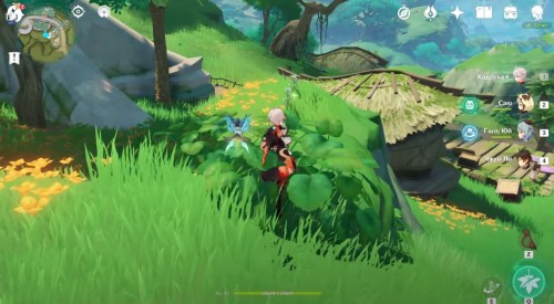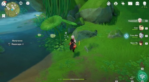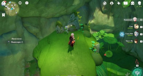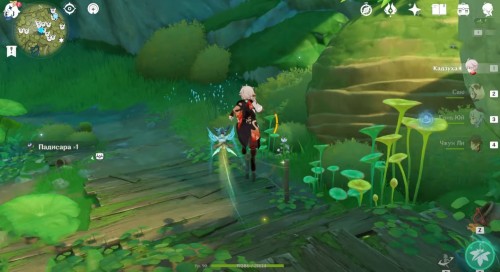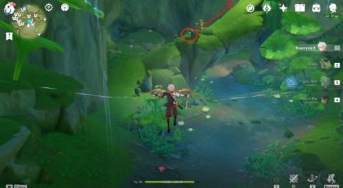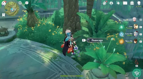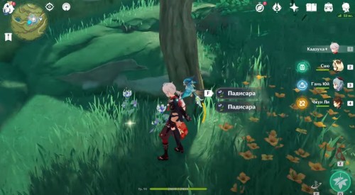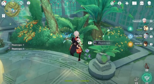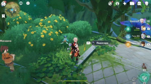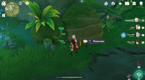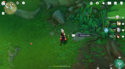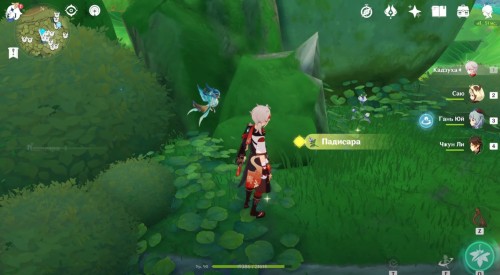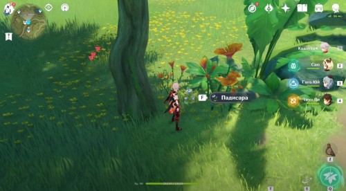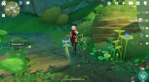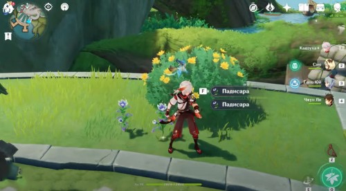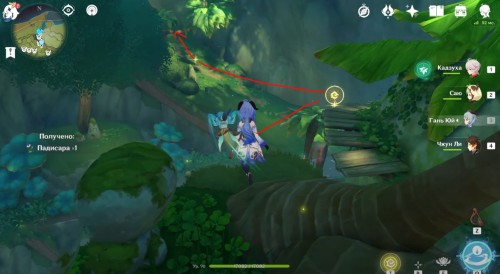 Возвратитесь к статуе Дендро архонта и соберите первый цветок прямо возле телепорта. Далее бегите на север к домику аранары на холме и возьмите 2 падисары. Встаньте позади хижины и воспользуйтесь четырехлистником, чтобы взобраться на выступ, где вы найдете 1 растение.