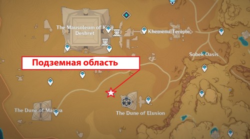 Нужное вам строение расположено под землей. На скриншотах ниже показано его точное местонахождение. Однако дорога туда весьма запутанная, поэтому мы подробно рассмотрим весь путь. Добавим, что прежде чем отправляться туда, вам следует пройти квестовую цепочку «Золотая страна грез», чтобы заполучить Плиту красных песков и увеличить особую Власть.