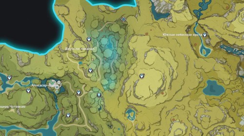 Правильный порядок активации тотемов показан на скриншоте ниже. Если у вас нет Дендро героев, то можете просто взять дендрогранум и атаковать столбы заряженными ударами. Если вы все сделаете правильно, то откроется вход в подземелье.