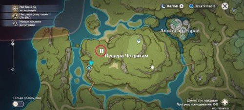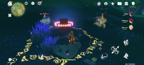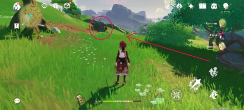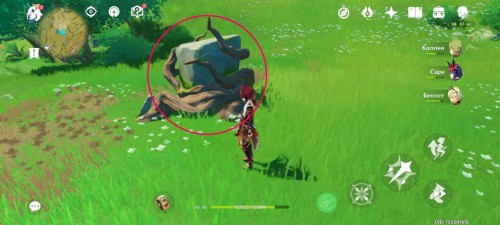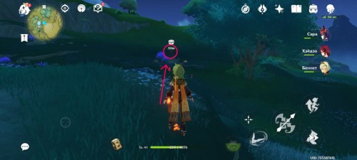 Игрокам предстоит отправиться к Пещере Чатракам. Приближаясь к точке, отмеченной на скриншоте ниже, вы заметите группу Пиро слаймов. Паймон заговорит, как бы намекая, что тут и правда спрятана загадка с ценным призом.
