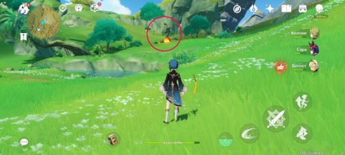 Примечание: растение, которое мы должны защитить от враждебной стихии, в разных местах отличаются друг от друга. В первом случае это был прыгучий гриб, а в этот раз перед нами растение, периодически наносящее небольшой Дендро урон по области.
