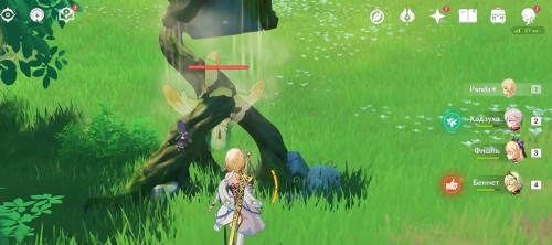 Действуем по старой схеме: убиваем слаймов, используем Дендро удар по поврежденному растению.
