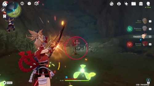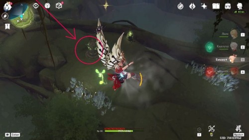 Перейдем непосредственно к действиям: рядом с Дендро тотемом находятся Дендрогранумы. Воспользуйтесь ими, и атакуйте росток Увядания.