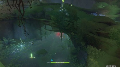 Дендро тотем теперь разблокирован, и его можно активировать, применив элементальный навык нужной стихии. Вода уйдет, а внизу мы увидим последний росток Увядания и механизм, позволяющий зажечь искру жизни. Прежде чем спускаться обязательно прихватите с собой Дендрогранумы, так как внизу вы их не найдете!