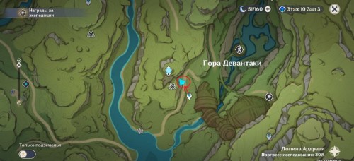 Добраться до первого пункта маршрута можно от Статуи Архонтов у горы Девантаки, спустившись к руке голема на юго-восток.