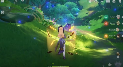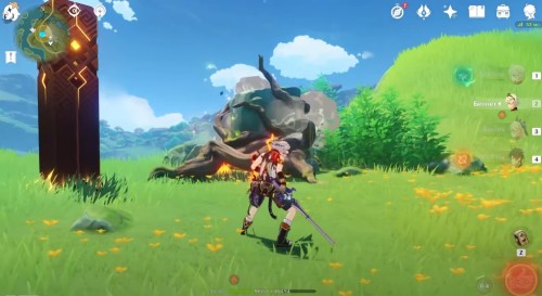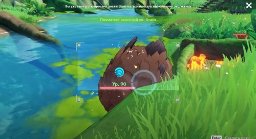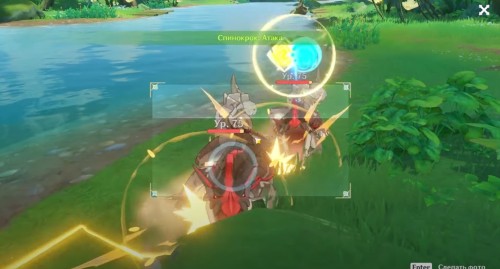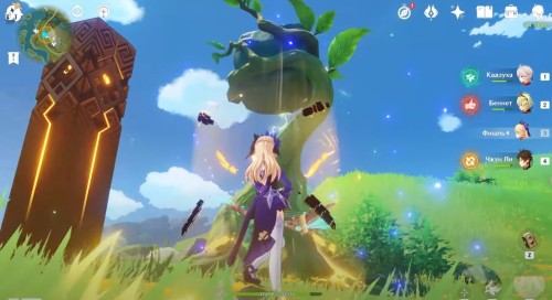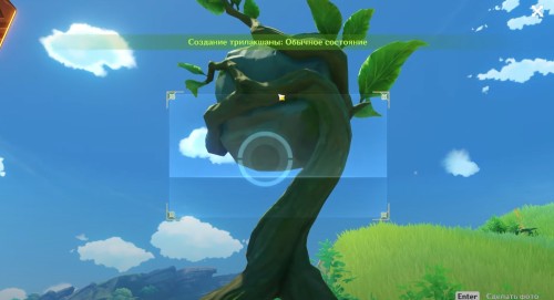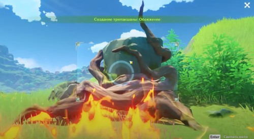 Далее ударьте по лиане Электро стихией, чтобы она засветилась и немного подросла. Сделайте ее фото. Потом ударьте ветвь Пиро навыком пару раз, дабы камень полностью опустился на землю. Сфотографируйте трилакшану. Теперь можете забрать награды.