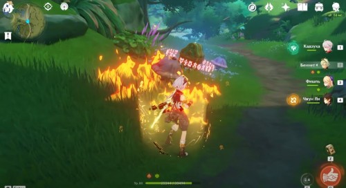 Затем ударьте по ним Электро атакой, чтобы перевести в оживленное состояние. Сделайте еще один снимок. После этого ударьте грибы Пиро навыком, чтобы они сгорели, и снова сфотографируйте их.