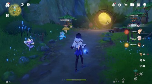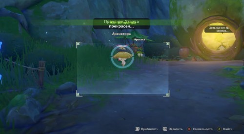 Далее развернитесь, поднимитесь немного по склону, а потом спуститесь и сверните влево. Вы обнаружите возле домика Арачатора, который окрашен в желтый цвет. Рядом с ним стоит Арасака, считающийся зеленым аранарой.