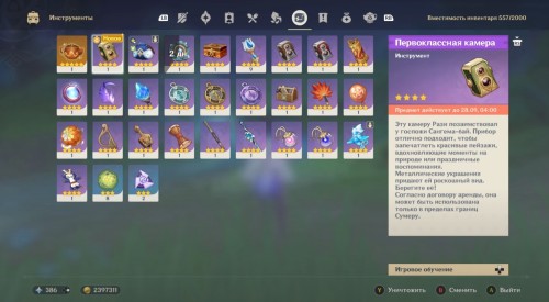 Разобравшись с указанными требованиями, вы получите новый инструмент – Первоклассную камеру. Откройте инвентарь, перейдите в категорию «Инструменты» и экипируйте на своего персонажа новый фотоаппарат. Снимать объекты нужно именно с помощью этого устройства.