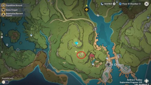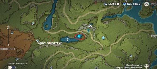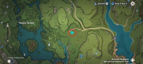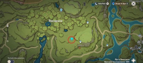 Переместитесь к телепорту на северо-востоке от Ванараны прошлого и летите в обратном направлении. Сундук охраняют 4 хиличурла.