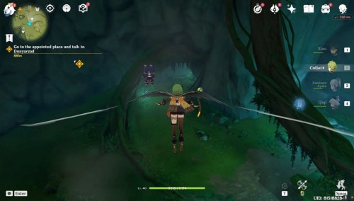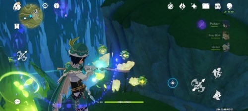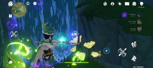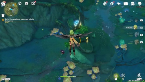 Спрыгните в полое дерево и сыграйте Песню ростка. Возьмите дендрогранум и поднимитесь к верхней платформе по грибам и четырехлистным символам. Выстрелите в Дендро эмблему и откройте сундук.
