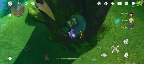 От подземелья «Башня презренной гордости» летите на восток, к платформе на дереве. Используйте Дендро персонажа и ударьте по камню, чтобы открыть сундук.
