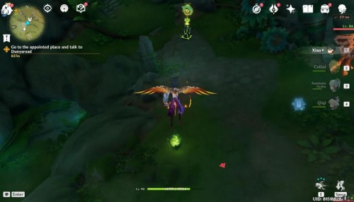 Телепортируйтесь на склон Гандха и летите на запад, к лагерю хиличурлов, охраняющих сундук.