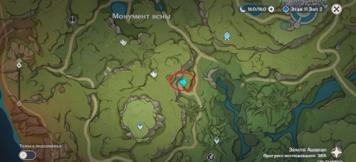 Здесь вы найдете первый Дендро тотем. Необязательно использовать персонажа соответствующей стихии: если взять дендрогранумы и атаковать монумент – это тоже сработает.