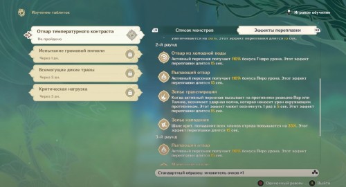 - Старайтесь постоянно вызывать реакцию Сверхпроводник (Крио + Электро), так как в этом случае вы не только снизите устойчивость мобов к физическому урону (который тоже получает усиление), но и получите дополнительную энергию.