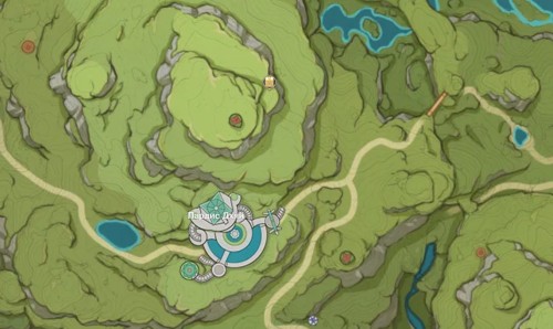 Переместитесь к телепортационной точке южнее руин Дахри, а затем пройдите немного на запад, поднявшись по склону. Там вы обнаружите двух Гео и Электро лавачурлов, а также шамачурлов. Разберитесь со всеми врагами, чтобы разблокировать сундучок.