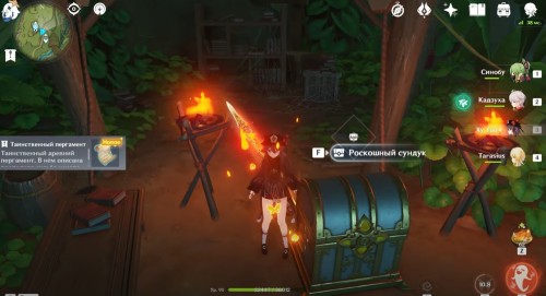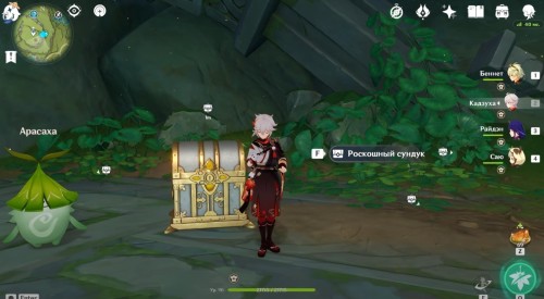 Чтобы попасть в пещеру с сундуками, вам необходимо для начала найти 10 зарытых кладов по снимкам в Таинственном альбоме. Для открытия же сундучков вам потребуется отыскать 76 аранар в Сумеру и выполнить их просьбы.
