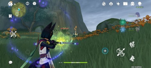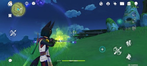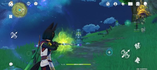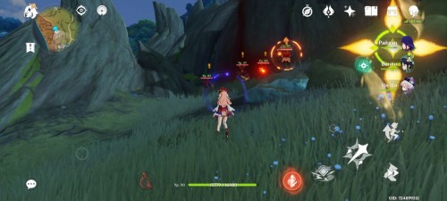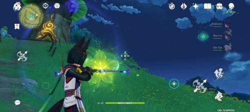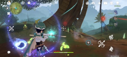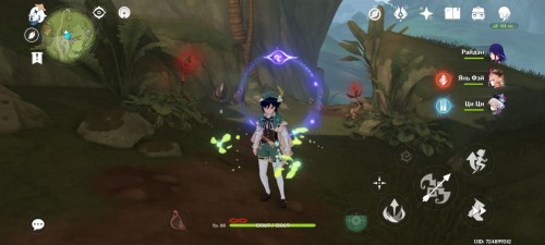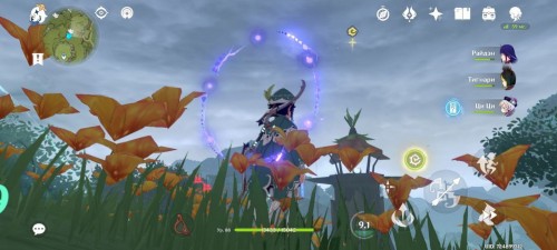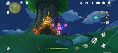 Вход в башню заграждает Дендро барьер. Развернитесь и идите к митачурлу, сидящему рядом с бутоном соцветия. Атакуйте бутон Дендро атакой и доберитесь до башни с помощью четырехлистных символов.