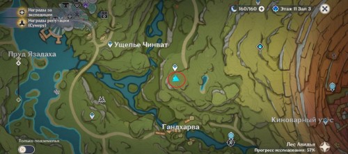 Первая опухоль расположена к северо-востоку от Гандхарвы. Ее охраняют хиличурлы и Пиро маг бездны.