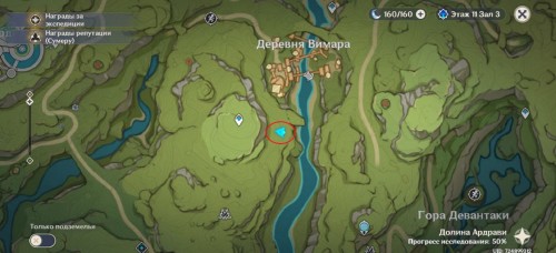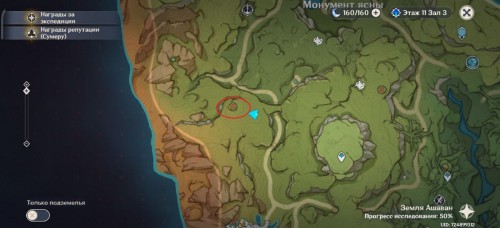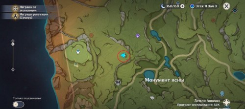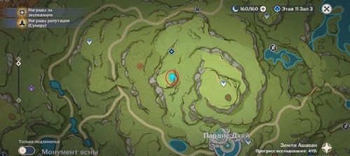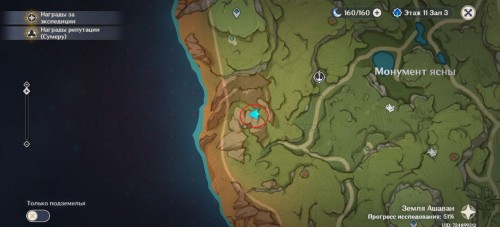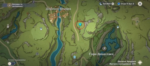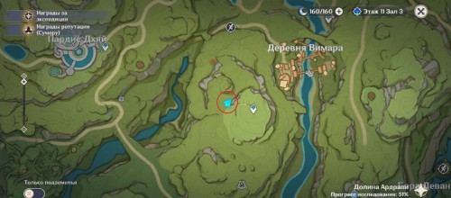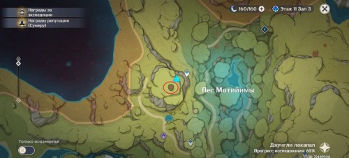 Одна из опухолей находится на самом краю карты, на западе от горы. Здесь вас ждут хиличурлы и Пиро маг бездны.